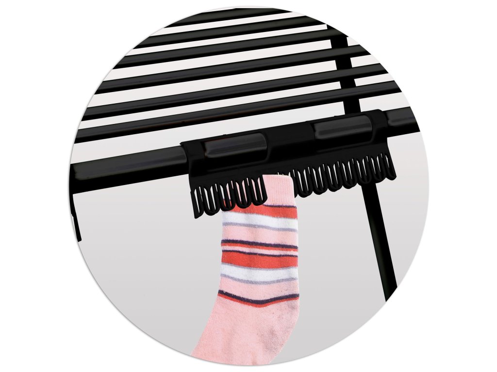 Držiak na ponožky maximalizuje priestor na sušičke, umožňuje zavesenie ponožiek po bokoch.