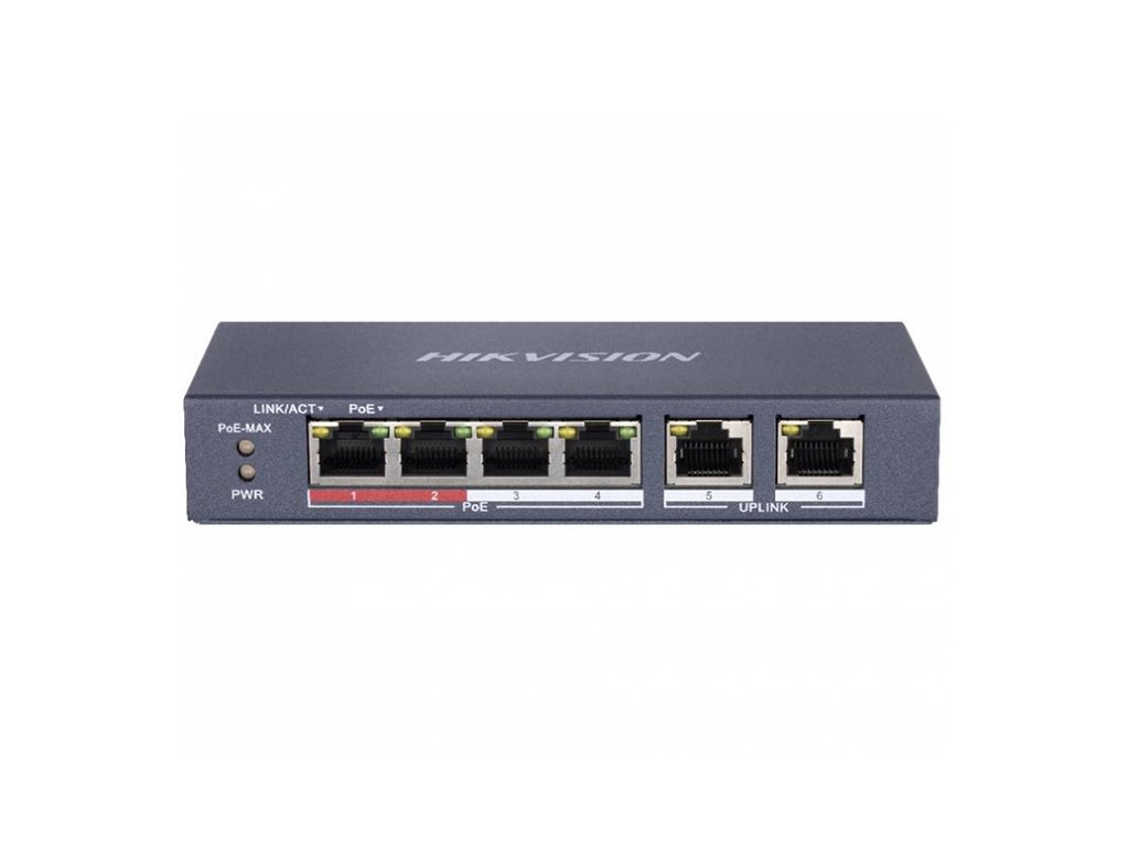 DS-3E0106P-E/M - Prepínač 4x PoE + 2x Uplink, 35W - Hikvision