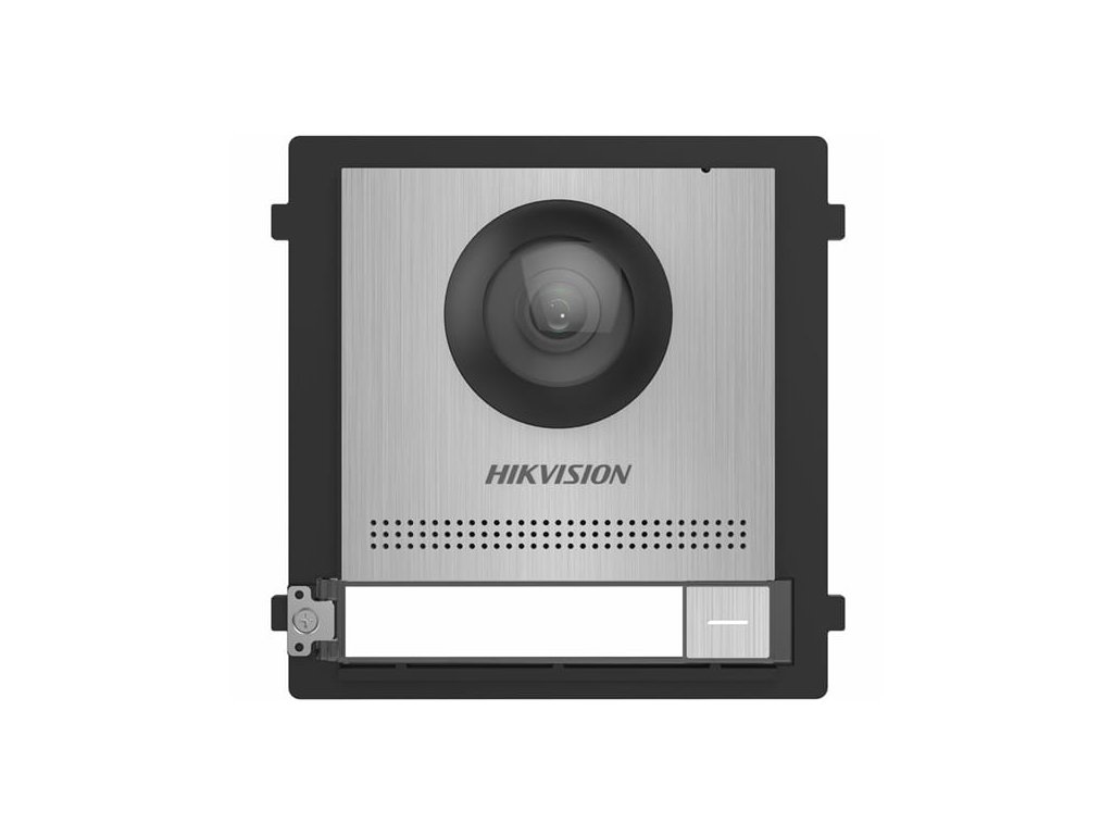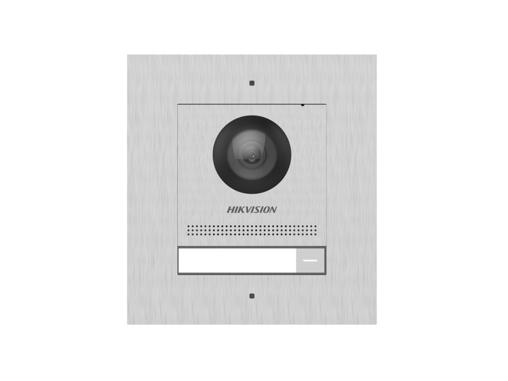 Modul DS-KD8003-IME1/S Flush je hlavná jednotka modulárneho systému videovrátnika značky Hikvision s povrchovou úpravou Inox / Nehrdzavejúca oceľ, uzavretý v podomietkovej rámovej DS-KD-ACF1/S.