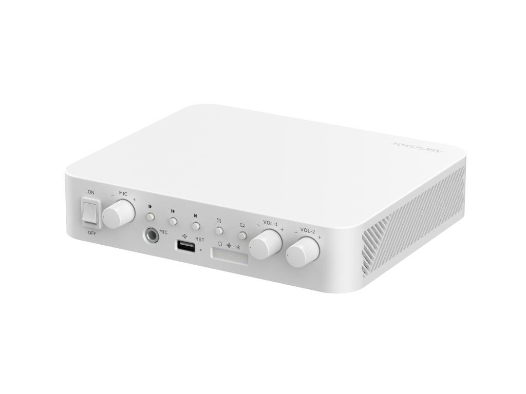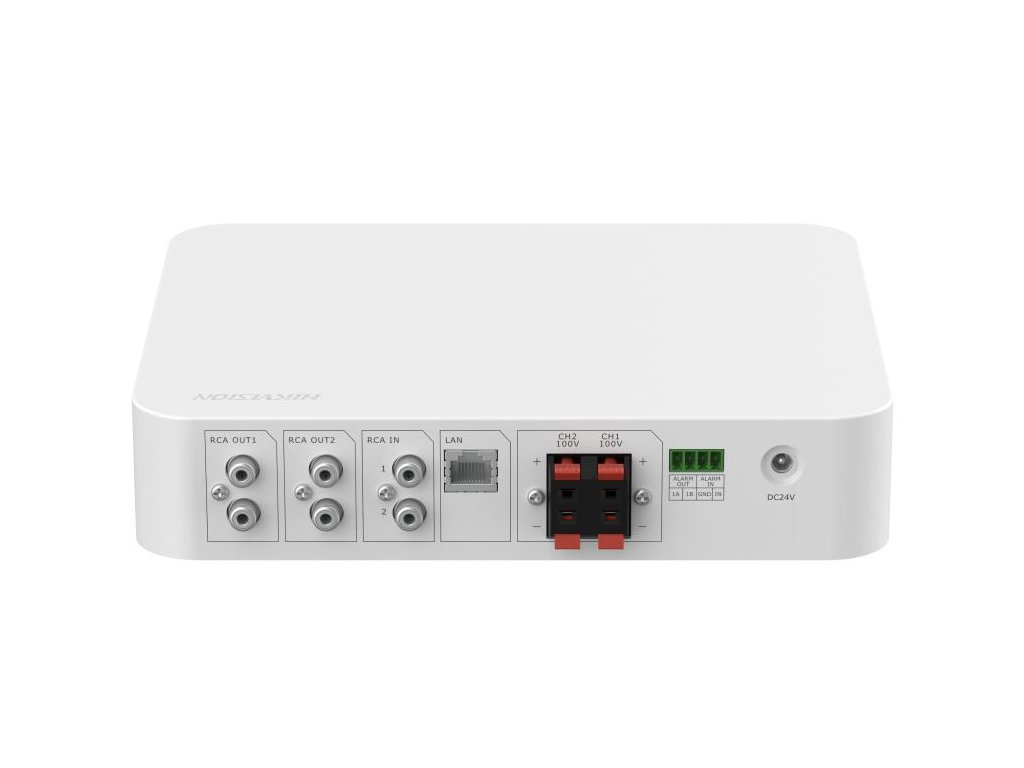 DS-QAAE1A80G1-VB je audio zosilňovač spoločnosti Hikvision, určený na prácu v architektúre TCP/IP. Zosilňovač je vybavený viacerými komunikačnými rozhraniami, ako sú Bluetooth, USB 2.0 a RCA vstupy a výstupy. Zosilňovač má dva kanály 100V určené na pripojenie reproduktorov.