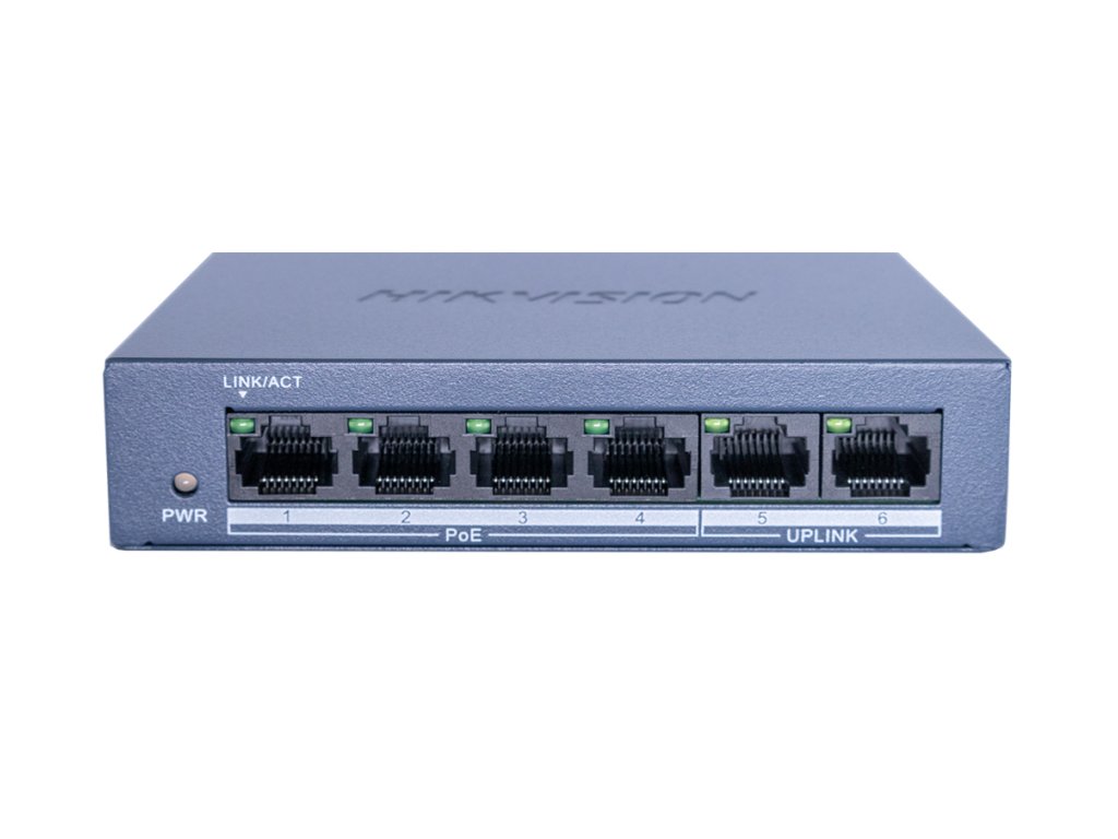 DS-XS0106-P - PoE prepínač 4+2, neadministratívny, 45W - Hikvision