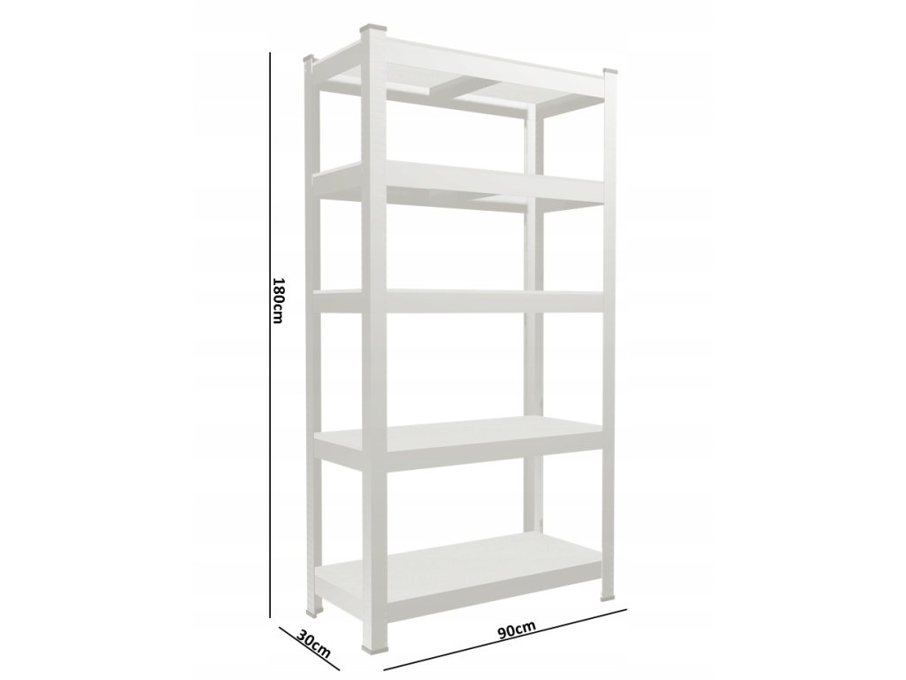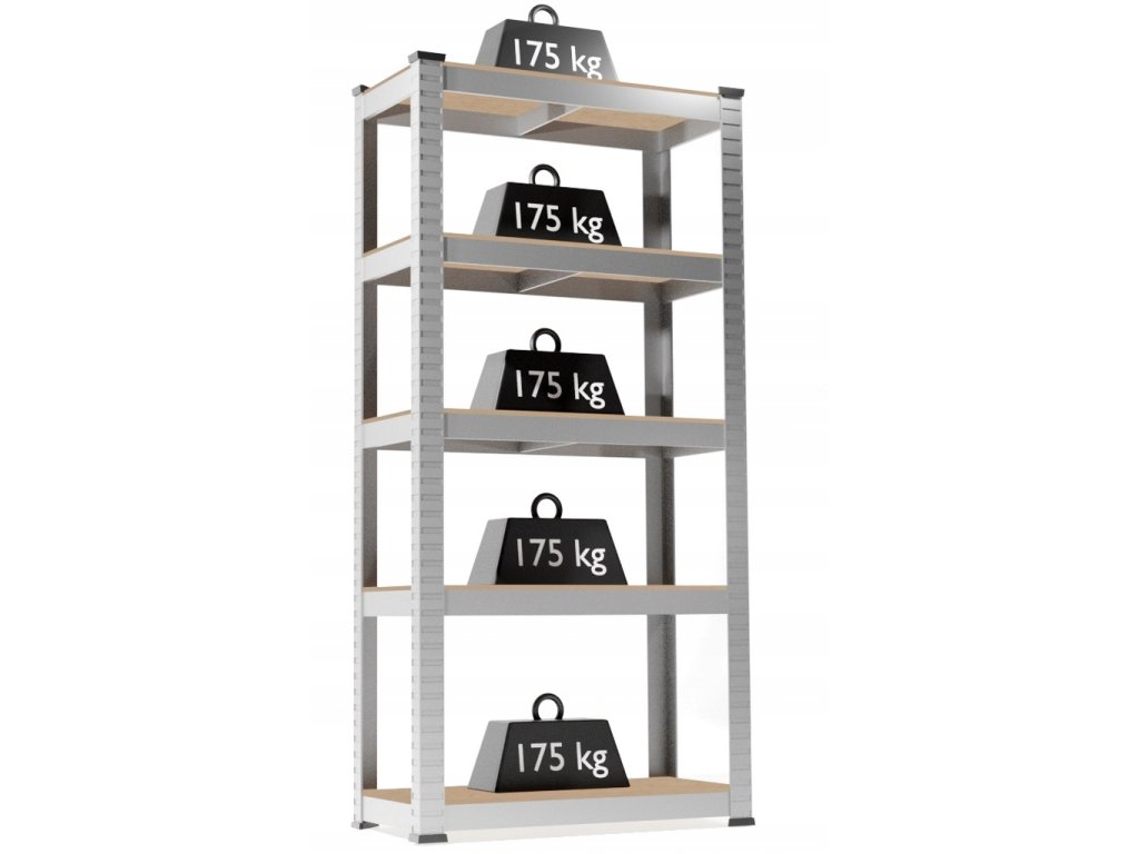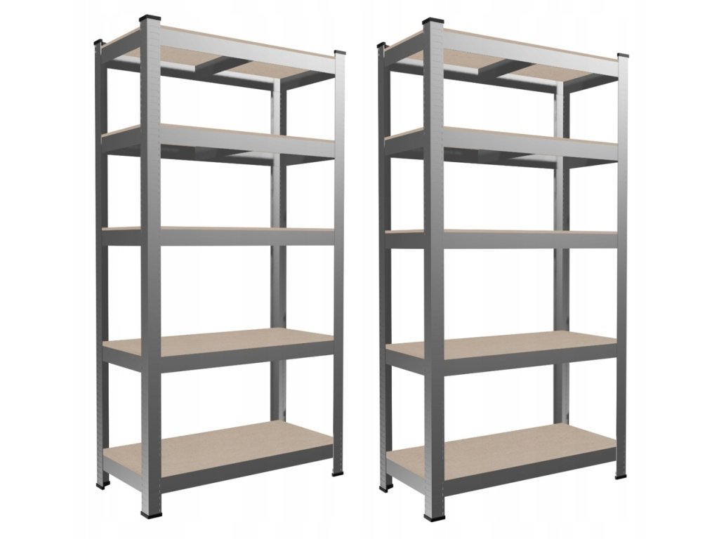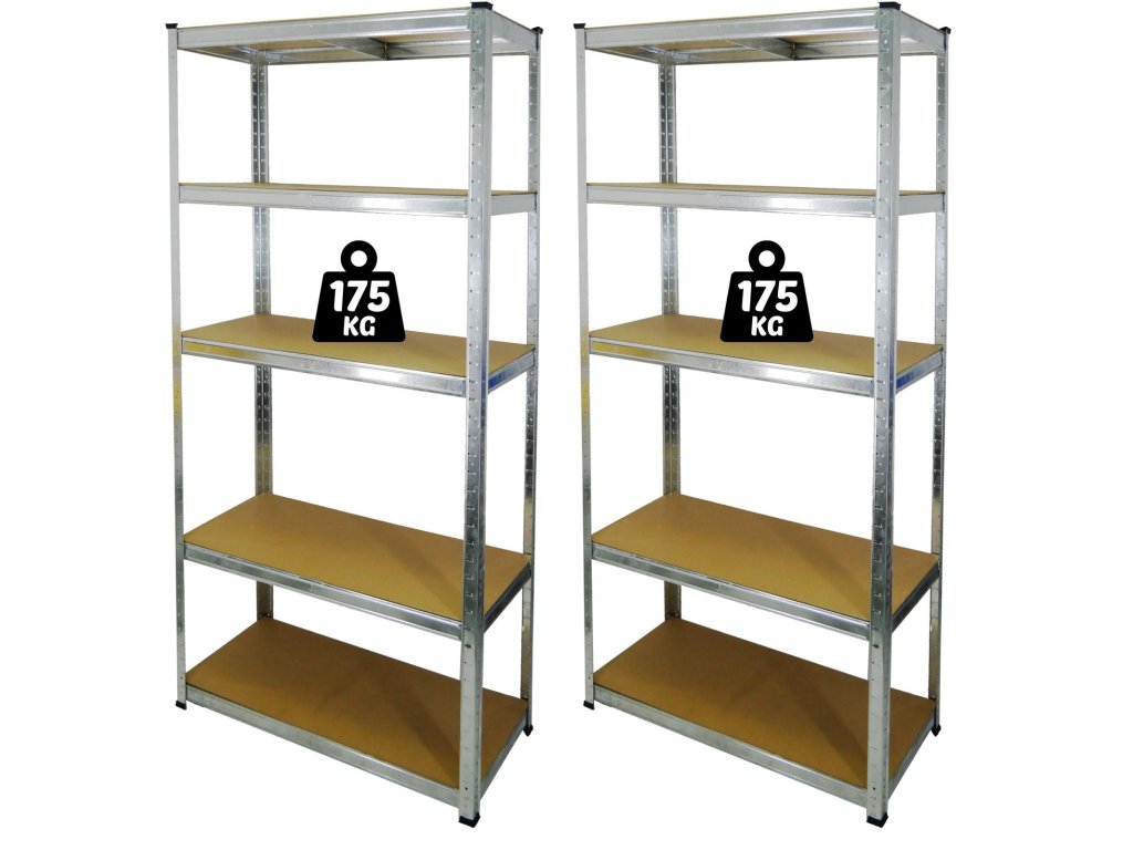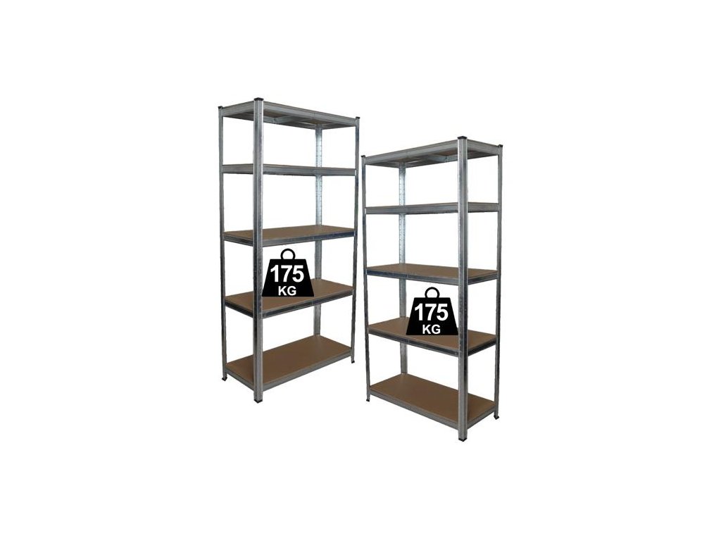Súprava dvoch päťúrovňových regálov je praktické riešenie na skladovanie v rôznych priestoroch. Vyrobené z pozinkovaných kovových profilov a políc z HDF dosiek, zaisťujú trvanlivosť a stabilitu. Podpery pod každou policou posilňujú konštrukciu a maximálne zaťaženie jednej police vo výške 175 kg (pri rovnomernom rozložení váhy) a maximálne zaťaženie celého regálu do 875 kg zaručujú pevnosť a funkčnosť. Jednoduchá montáž umožňuje rýchle používanie.