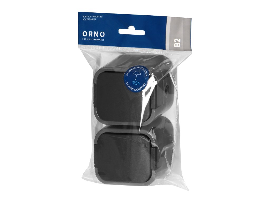 Dvojitá povrchová zásuvka 2x2P+E, striekajúco-odolná s krytom B2, IP54, NT-6B2, sivá/čierna