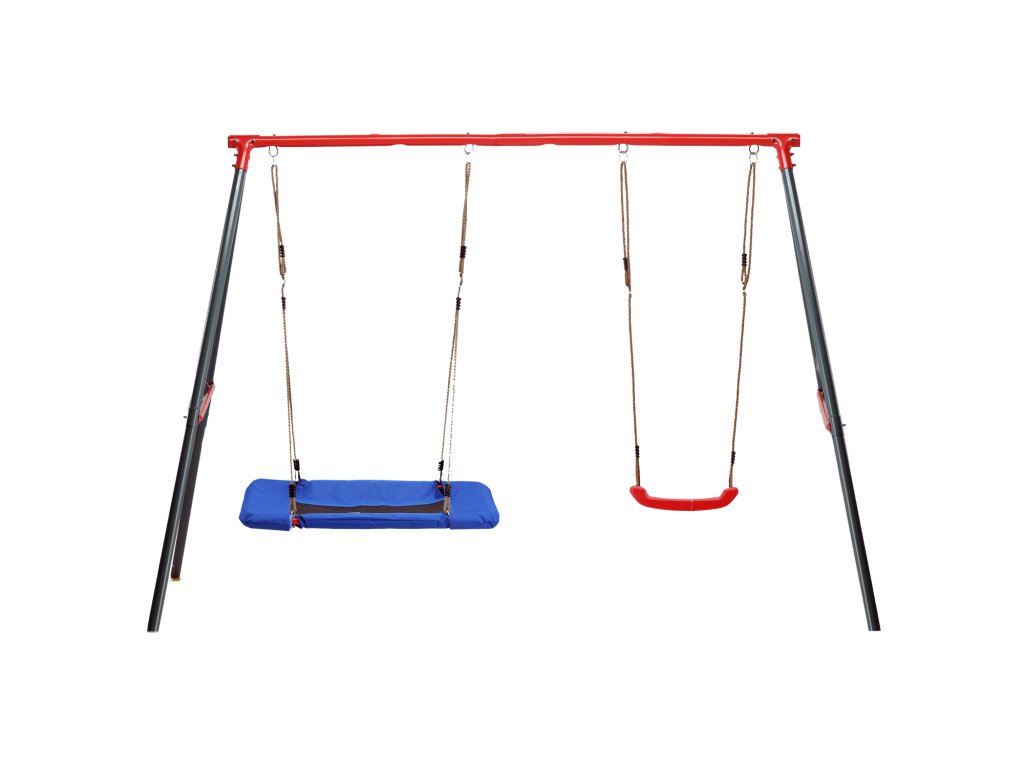 - Vybavenie: 1 červené sedadlo hojdačky, 1 modrá hojdačka hniezda