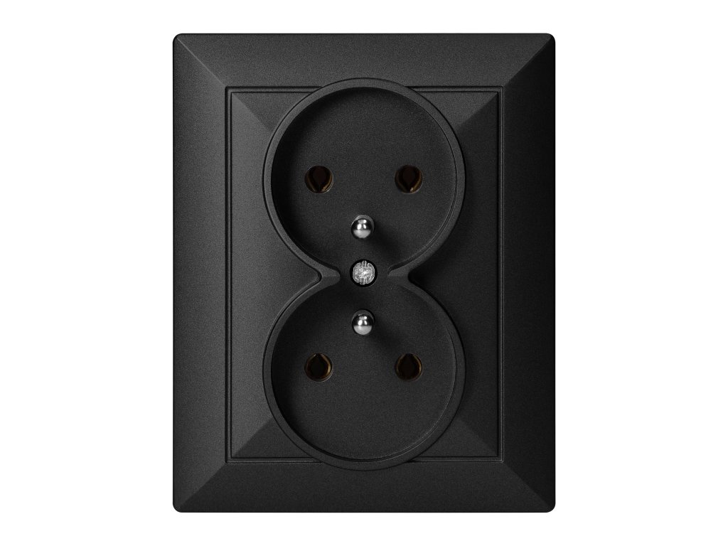 Dvojitá zapustená zásuvka 2x2P+E Pearl, 16A, 250V, PT-6 P, čierna