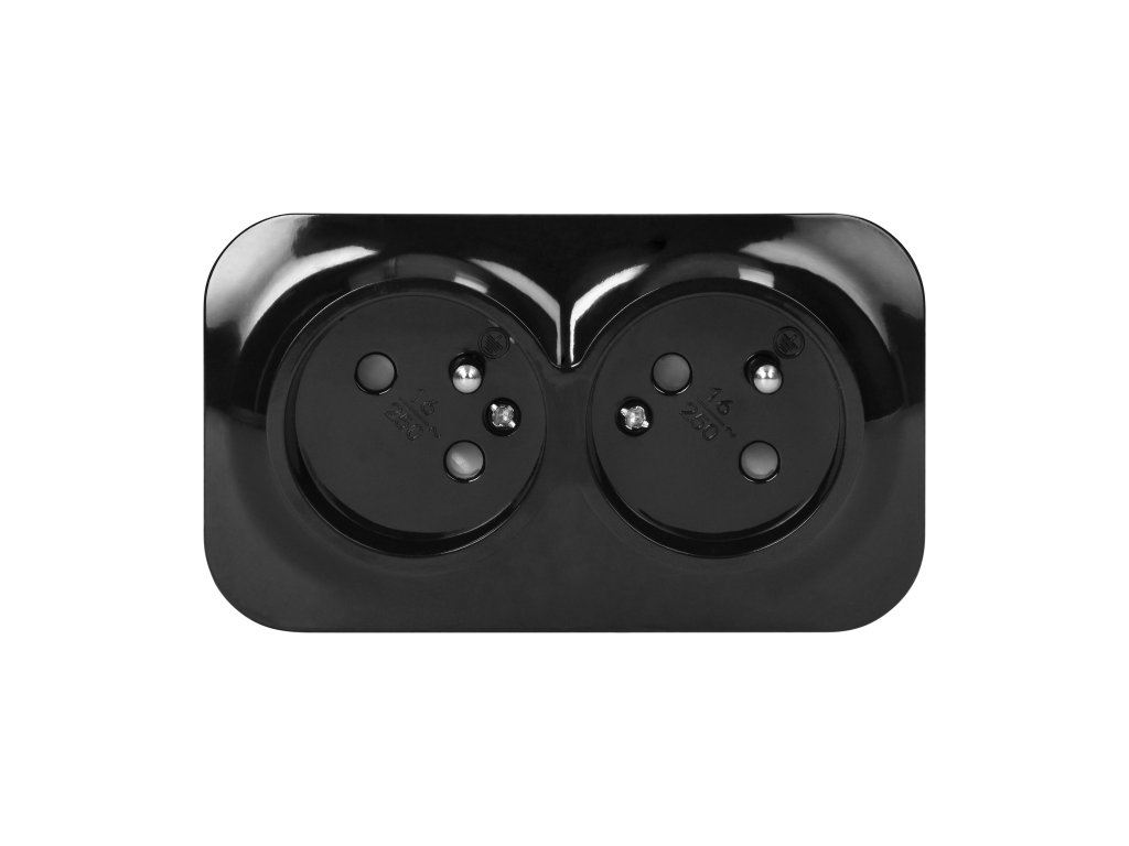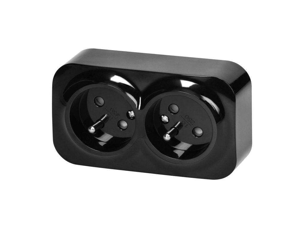 Dvojitá zásuvka 16A/230V, čierna, 10ks