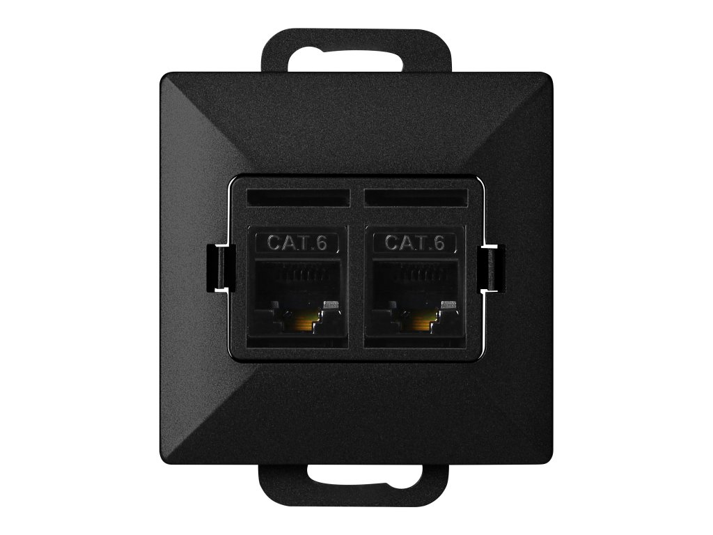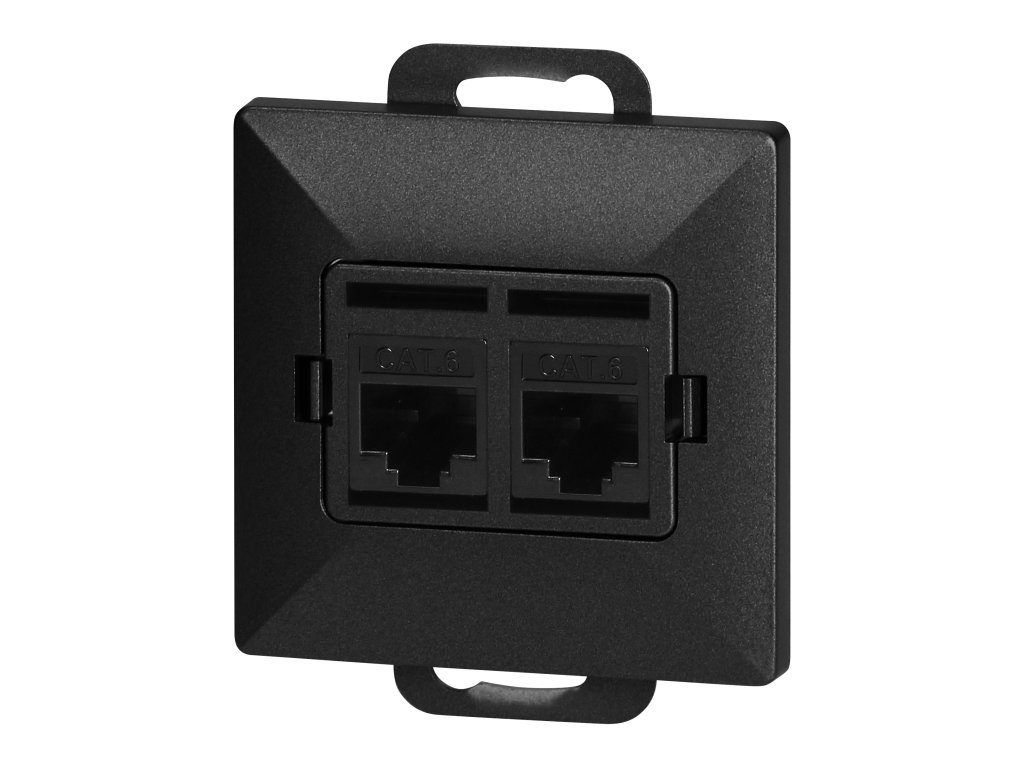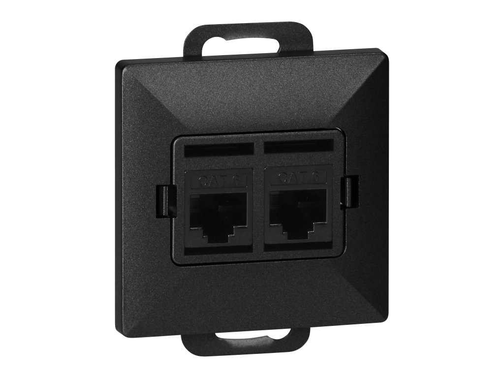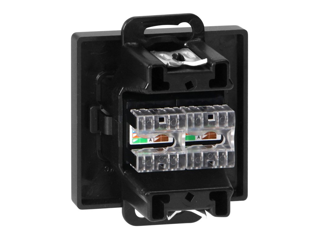 Modulárny rad so symetrickým systémom rámových dosiek (pre 1-, 2-, 3-, 4-, 5-modulov) umožňujúci montáž produktu v horizontálnej aj vertikálnej polohe. Moderný mechanizmus rýchleho pripojenia (drôty sa pripájajú ich zatlačením priamo do tela) zabezpečuje bezpečnú a spoľahlivú inštaláciu a odstránenie drôtov. Zásuvky sú vybavené tradičnými skrutkovými spojmi. Vnútorná konštrukcia svoriek zaručuje bezpečné pripojenie drôtov od 0,75 mm? do 2,5 mm?. Silná a robustná montážna doska a vysoko kvalitné samoťahové prvky umožňujú stabilnú a bezpečnú inštaláciu v krabici. Špeciálne pružné prvky uľahčujú nasadenie rámu do tela.Dvojitá 2xRJ45 počítačová zásuvka, netienená Cat5. Prispôsobená pre zapustenú montáž. Mala by sa používať v interiéri (IP20).