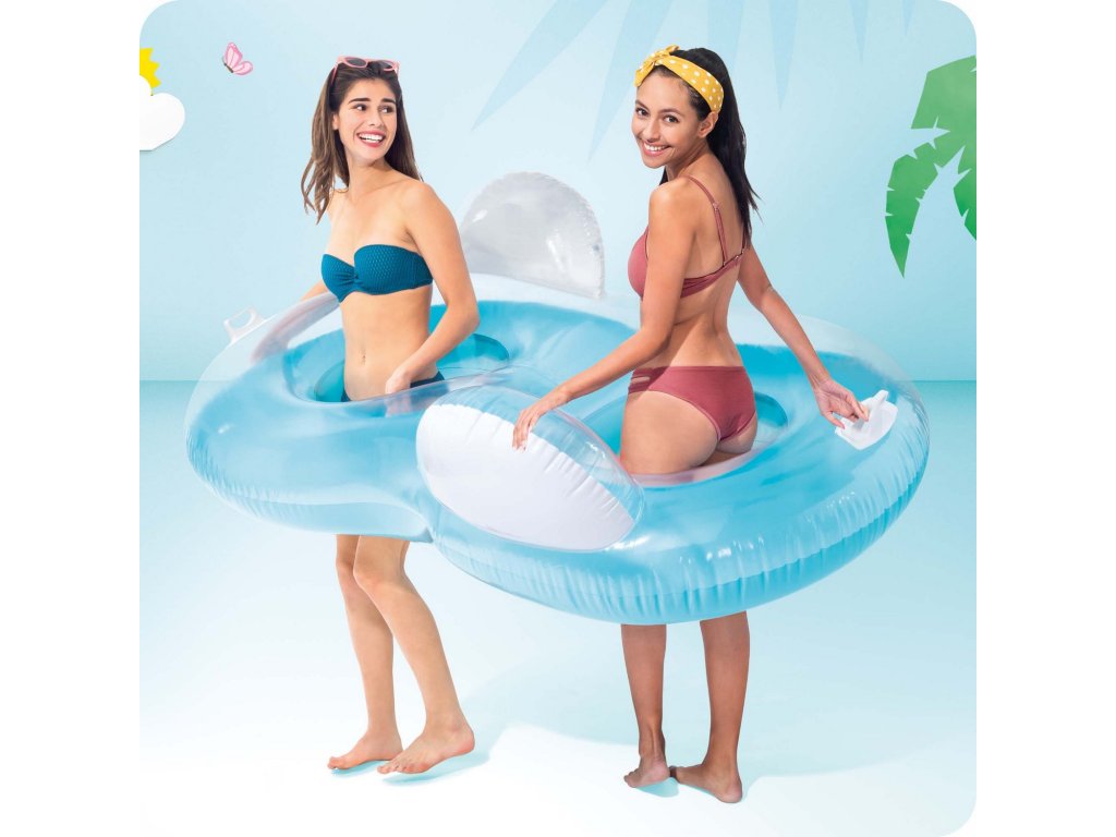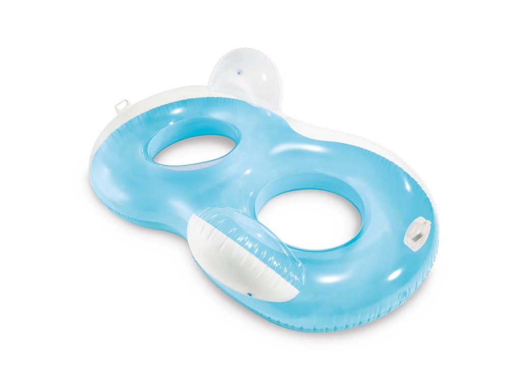 Dvojité plávajúce plážové kreslo INTEX je skvelý dvojmiestny plážový produkt s krásnou modrou farbou zo spodnej strany a priehľadnou hornou časťou. Vďaka svojim optimálnym rozmerom 198 x 117 cm je tento produkt ideálny pre pláž aj bazén. O maximálny komfort odpočinku sa postarajú nafukovacie operadlá.