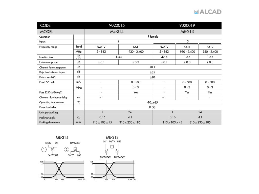 Dvojitý TV/SAT multiplexer ME-213 ALCAD