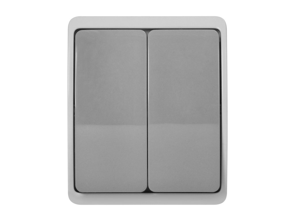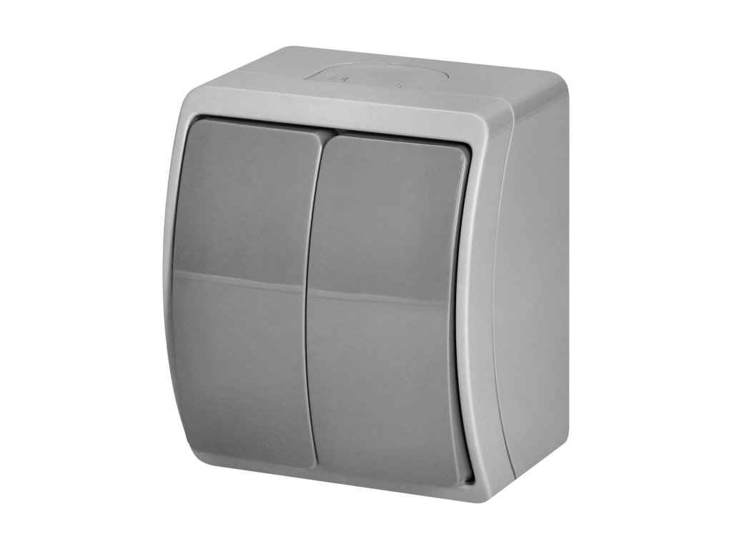 Dvojtlačidlový spínač IP44 sivý vonkajší
