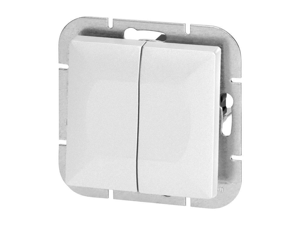 Modulárna séria so symetrickým rámovým systémom dosiek (pre 1-, 2-, 3-, 4-, 5-modulov) umožňuje montáž produktu vo vodorovnej aj zvislej polohe. Moderný mechanizmus rýchleho pripojenia (drôty sú pripojené ich priamym zasunutím do tela) poskytuje bezpečnú a spoľahlivú inštaláciu a odstránenie drôtov. Zásuvky sú vybavené tradičnými skrutkovými spojmi. Vnútorný dizajn svoriek zaručuje bezpečné spojenie drôtov od 0.75 mm? do 2.5 mm?. Pevná a robustná mriežka montážnej dosky a vysoko kvalitné samonavíjacie prvky umožňujú stabilnú a bezpečnú inštaláciu v krabici. Špeciálne pružinové prvky uľahčujú nasadenie rámu do tela.Dvojtlačidlový vypínač s osvetlením je prispôsobený na zapustenú montáž. Produkt sa používa na ovládanie osvetlenia, napríklad zloženého z lustrov a tradičných alebo moderných LED žiaroviek. Umožňuje zapnutie a vypnutie osvetlenia, rozdelené na dve alebo viac zón. Tento model je navyše vybavený podsvietením - takže bude ideálny všade tam, kde je dôležitá viditeľnosť tlačidla. Mal by sa používať v interiéri (IP20).