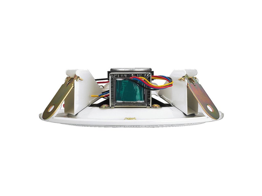 Reproduktor s plným rozsahom a dvojkónickým kónusom s menovitým výkonom 12W určený na použitie v PA systémoch v technike 100V. Montáž na strop s hrúbkou od 5 do 22 mm. Vybavený transformátorom, ktorý reguluje jeho výkon - v závislosti od pripojenia pracuje s výkonom 12, 6 alebo 3 W. Umožňuje pripojenie k zosilňovaču s nízkym výkonom (napríklad 60 W) až 10 reproduktorov, ktoré pracujú v režime 6 W. Vyrobený z vysokokvalitných materiálov, ktoré zaručujú bezproblémové používanie po dlhú dobu. Vďaka malým rozmerom veľmi dobre zapadá do prostredia a je takmer neviditeľný. Ideálne sa hodí do malých priestorov, ako sú čakárne, konferenčné miestnosti, malé obchody.
