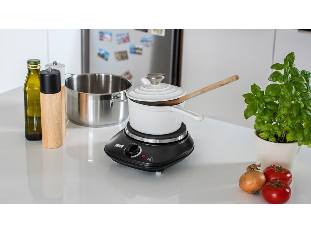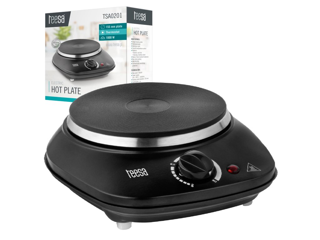 Máte záujem o malý elektrický prenosný varič na parcelu alebo kempovanie? Vyberte si model Teesa TSA0201 s výkonom 1000 W a jedným liatinovým horákom. S maximálnou teplotou až 530 °C rýchlo uvarí vodu na čaj a kávu a pripraví raňajky alebo večeru pre celú rodinu. Pohodlné ovládanie prenosného variča Teesa zabezpečuje gombík termostatu s kontrolkou. O vysokej kvalite prenosného turistického variča Teesa svedčia použité žiaruvzdorné materiály. TSA0201 je vyrobený z nehrdzavejúcej ocele s nepriľnavým povrchom, ktorý výrazne uľahčuje čistenie. Stabilnú a bezpečnú prevádzku zaručujú protišmykové nožičky a funkcia ochrany proti prehriatiu a prepätiu.