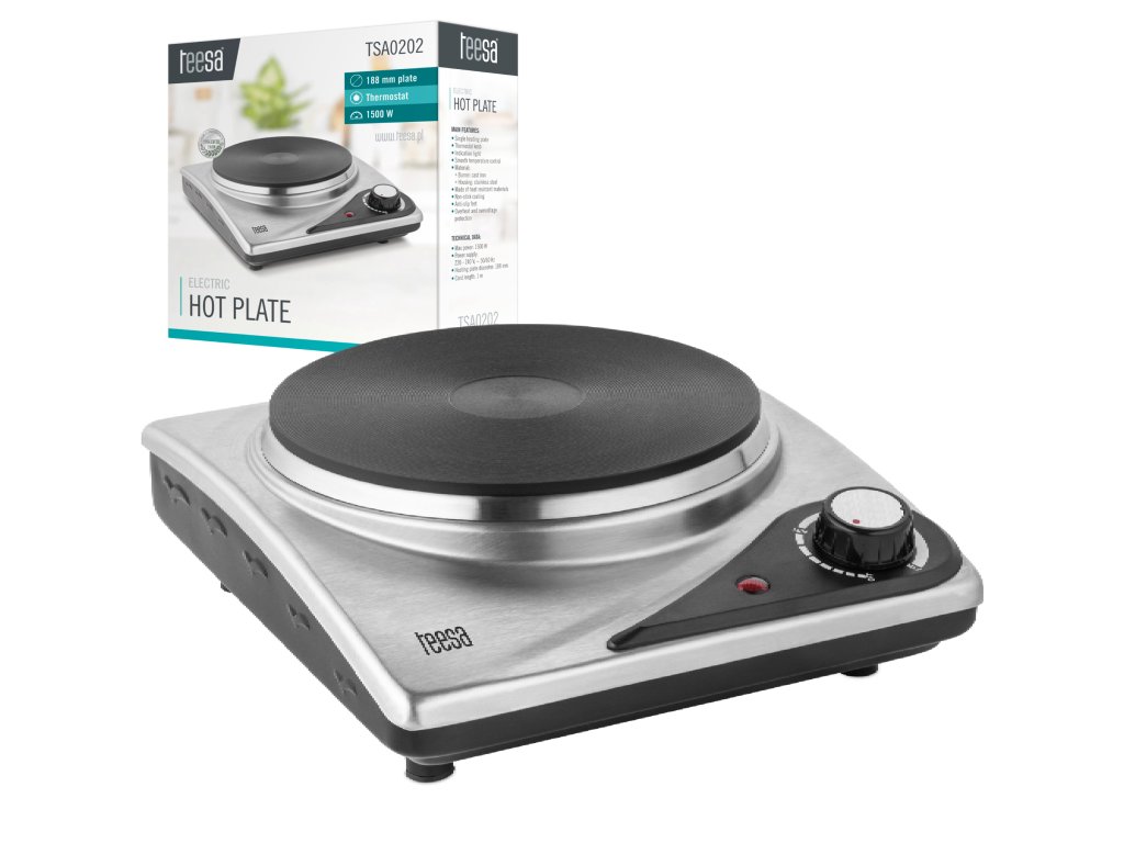 Chystáte sa kempovať a vo výbave vám chýba len kompaktný prenosný elektrický varič? Vyberte si model Teesa TSA0202 s výkonom 1500 W a jedným liatinovým horákom. Vďaka maximálnej teplote až 650 °C vám zariadenie umožní nielen uvariť vodu na čaj alebo kávu, ale aj uvariť večeru pre celú rodinu. Pohodlné ovládanie turistického variča Teesa zabezpečuje gombík termostatu s kontrolkou.