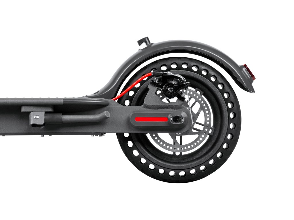 Kolobežka Fast Wheels PRO je vybavená ručnou kotúčovou brzdou, vďaka ktorej nemusíte pri zastavovaní zložiť nohu z plošiny. Ďalšou výhodou takejto brzdy oproti klasickej nožnej brzde je menšie opotrebovanie kolies.