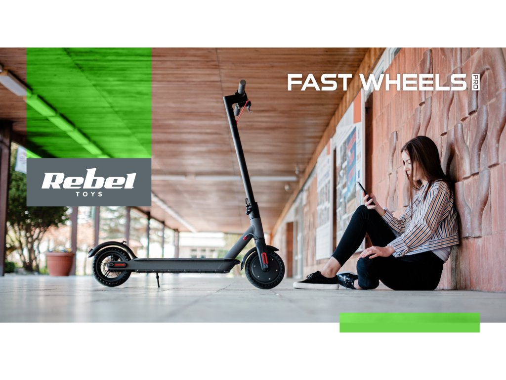 Pre kolobežku Fast Wheels PRO bola vyvinutá špeciálna aplikácia REBEL Fast Wheels PRO, ktorá obsahuje množstvo užitočných funkcií. Umožňuje nielen skontrolovať aktuálnu rýchlosť, ale môžete tiež zadať rýchlostný limit alebo nastaviť tempomat. Okrem toho aplikácia vypočíta odhadovanú vzdialenosť, ktorú prejdete na batériu.