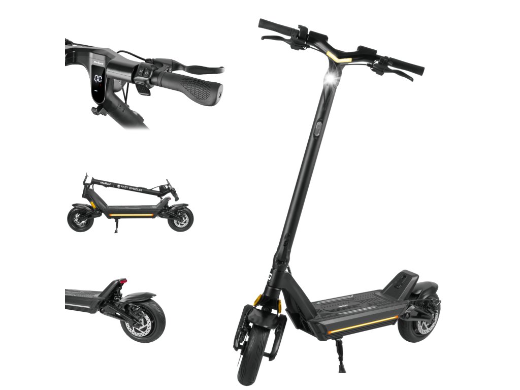 Elektrická kolobežka FAST WHEELS PRO MAX sa mimoriadne ľahko skladuje a prepravuje. Jeho skladacia konštrukcia znamená, že zaberá málo miesta. Vezmite si ho teda so sebou kamkoľvek chcete a užite si novú kvalitu cestovania.