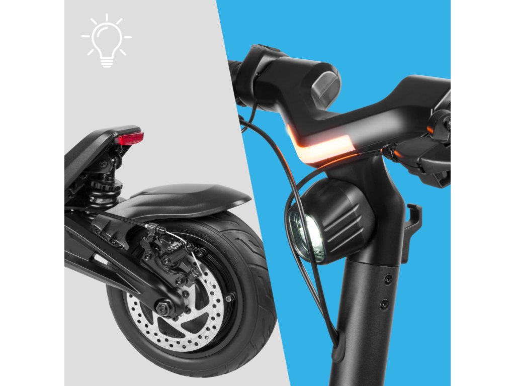 Používanie kolobežky by malo byť nielen príjemné, ale za každých okolností aj bezpečné. Preto je kolobežka FAST WHEELS PRO MAX vybavená svetlami, vpredu aj vzadu, ktoré zaisťujú výbornú viditeľnosť aj po zotmení.