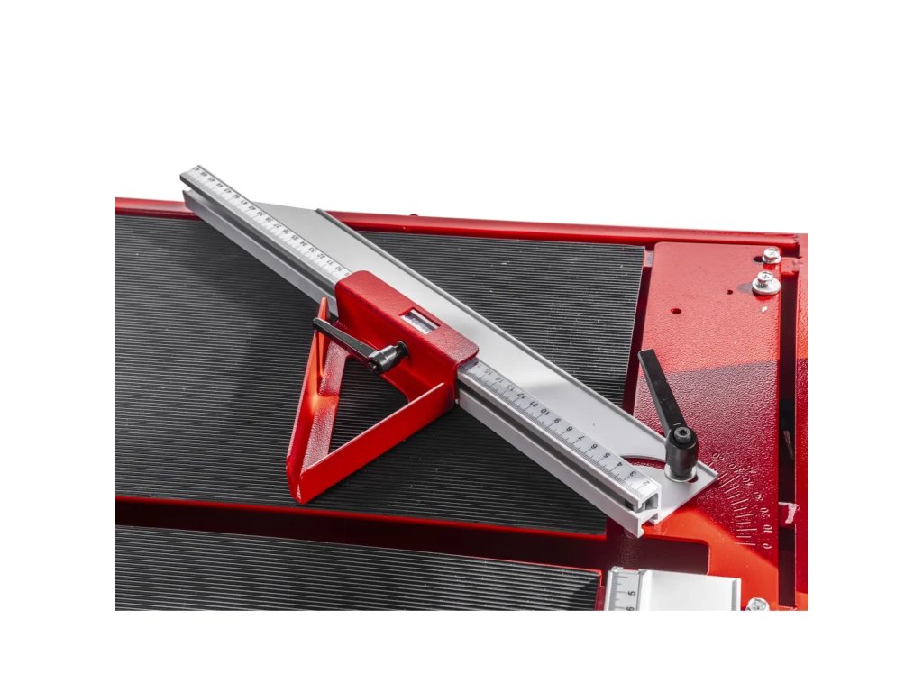 Vybavenie obsahuje pracovnú plochu vyrobenú z ocele s rozmermi 1250x460 mm, ktorej pracovnú plochu je možné ďalej zväčšiť rozložením ďalších bočných dosiek - to je významné uľahčenie, najmä pri práci s veľkými doskami, keď je potrebné dodatočné podoprenie. Okrem toho bola pracovná doska pokrytá gumou, ktorá zabezpečuje vysokú priľnavosť dlaždice k povrchu - vďaka tomu sa materiál drží bezpečne, čo uľahčuje presné rezanie.