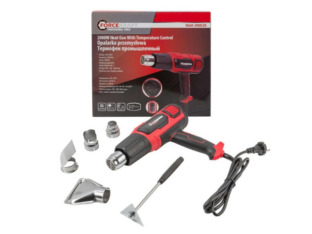 Elektrická teplovzdušná pištoľ 2 rýchlosti 4 trysky 600°C 2000W