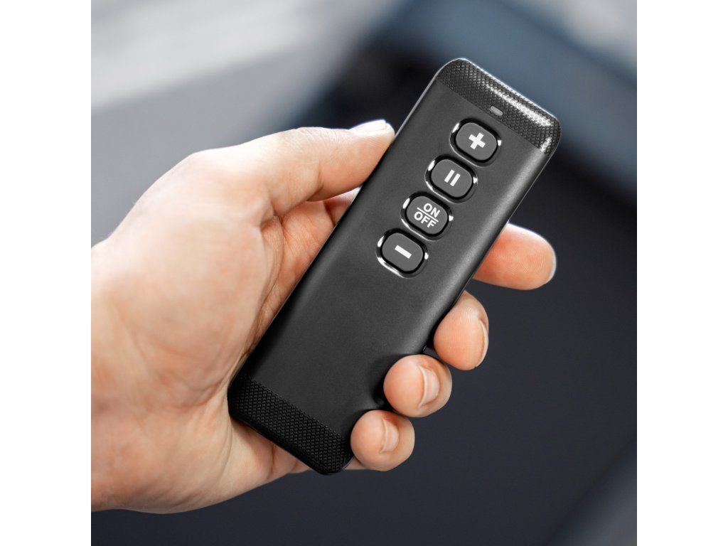 Teraz sa nemusíte zohýbať ani prerušovať tréning – k bežeckému pásu RBA-1017 je pripojený diaľkový ovládač, ktorý umožňuje ľahké nastavenie rýchlosti pri tréningu. Kompaktný, napájaný batériou, zaručuje pohodlie a plnú kontrolu na dosah ruky.
