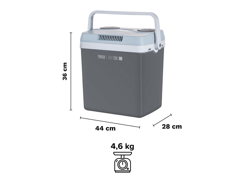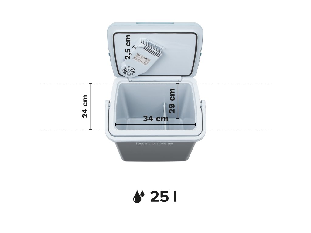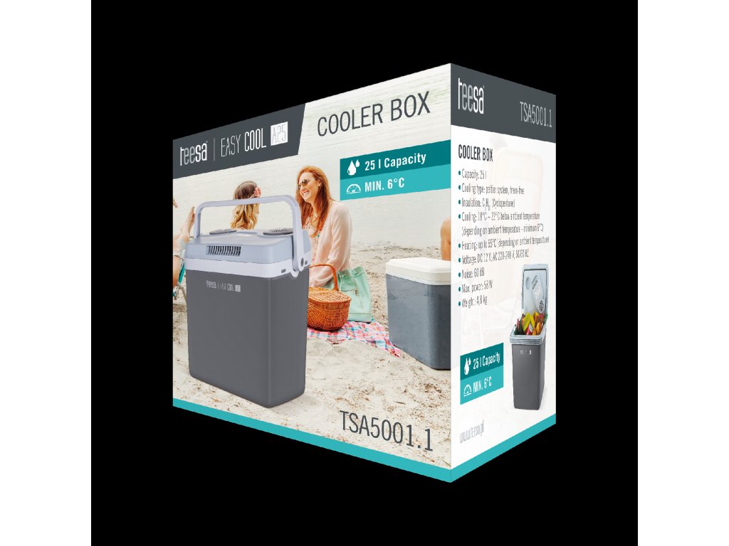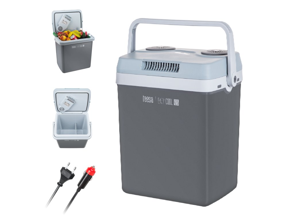 Nemusíte sa pýtať, ako cestovná chladnička funguje a či je bezpečná? Teesa EASY COOL A25 je založený na termoelektrickom systéme Peltierových článkov, ktorý neobsahuje škodlivé freóny. Veľmi solídny výkon spotrebiča dopĺňa estetický kryt v odtieňoch sivej farby. Praktickou funkciou je možnosť napájania zo siete 230 V alebo zo zásuvky zapaľovača cigariet.