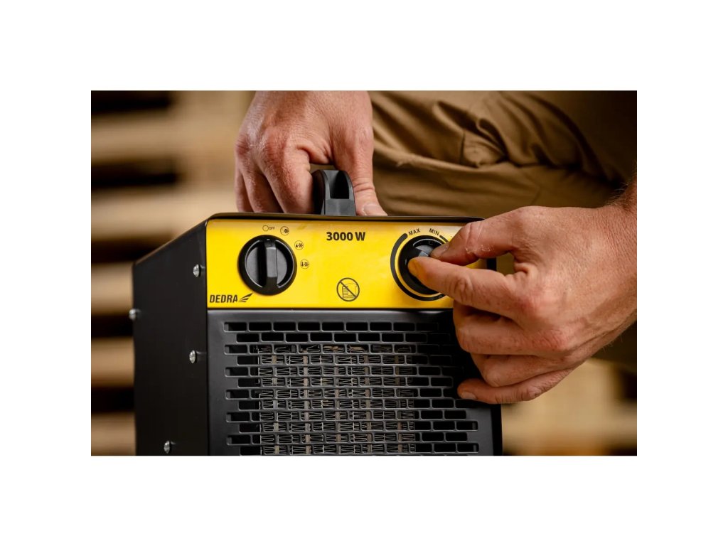 Elektrický ohrievač DED9931C 1 je spotrebič určený na použitie v uzavretýchmiestnostiach. Používa sa na vykurovanie obytných a komerčných priestorov, ako sú pivnice, garáže, dielne atď. Spotrebič je určený na použitie ako pomocný zdroj tepla, nie ako hlavný zdrojtepla. Ak je gombík teploty nastavený na minimálnu úroveň, zariadenie sa nemôže používať ako elektrický ohrievač bez funkcie vykurovania. Keramické výhrevné teleso (PTC) poskytuje teplo takmer okamžite po spustení. Dvojitý kovový kryt sa počas prevádzky nezahrieva. Spotrebič pracuje ticho. Pohodlná rukoväť na prenášanie.Teplo sa prenáša takmer okamžite.Tento výrobok je vhodný len na príležitostné použitie alebo na použitie v dobre izolovaných priestoroch.