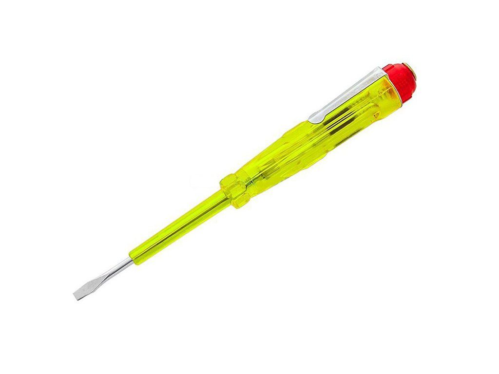 Elektro skúšačka 130 mm 5529- je praktický pomocník na rýchlu orientačnú kontrolu prítomnosti napätia v elektrickej sieti. Hodí sa na jednoduché domáce aj dielenské použitie, napríklad pri kontrole zásuvky alebo pri zisťovaní fázového vodiča.