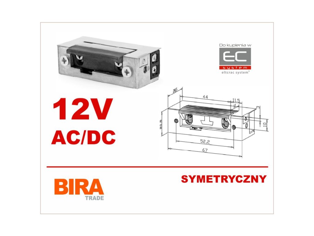 Symetrický elektrozámok BIRA ES1 001 sa vyznačuje symetrickou konštrukciou a nastaviteľným (do 3mm) zámkom, slúži na diaľkové káblové otváranie kovových, drevených a hliníkových dverí, skriniek alebo bránok. Používa sa na spoluprácu so systémami kontroly prístupu, domofónmi, čítačkami kariet.