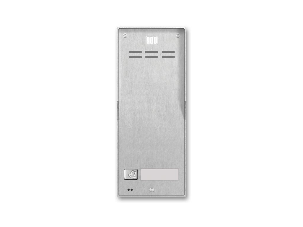 Panel FAM-P-1NPACC NT od spoločnosti ACO má jedno podsvietené vyvolávacie tlačidlo, čítačku kľúčeniek, miesto na umiestnenie popisov, to všetko je umiestnené v vandaloodolnom kryte vyrobenom z nehrdzavejúcej ocele. Produkt je odolný voči vonkajším poveternostným podmienkam a aktom vandalizmu.