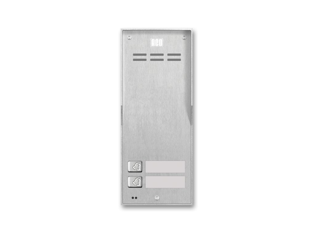Panel FAM-P-2NPACC NT od firmy ACO má dva podsvietené vyvolávacie tlačidlá, čítačku prístupového kľúča, miesto pre umiestnenie popisov, a všetko je umiestnené v odolnom puzdre z nehrdzavejúcej ocele odolné voči vandalizmu. Produkt je odolný voči vonkajším poveternostným podmienkam a vandalizmu.