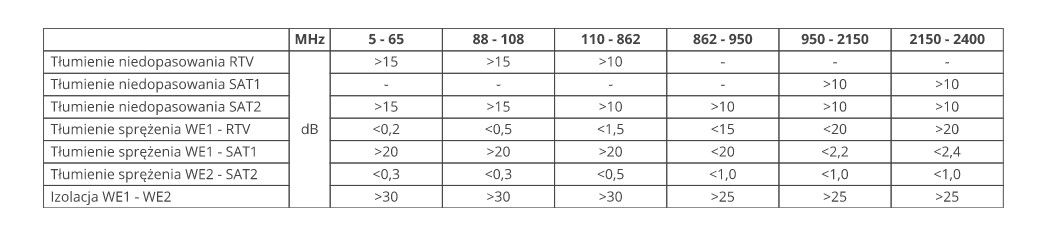 - Konektory: 2x zásuvka F, 1x konektor RTV