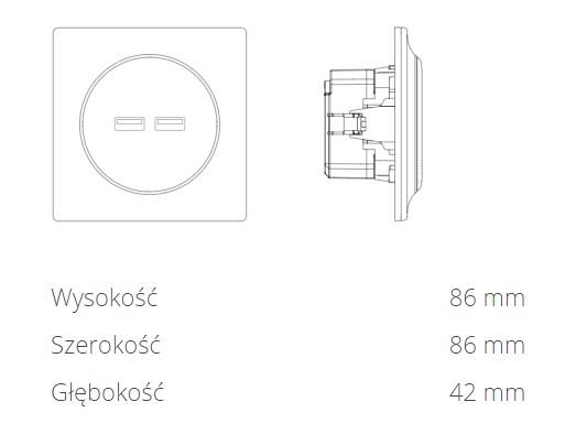 USB nabíjačka zo série Walli N sa vyznačuje veľmi estetickým, moderným vzhľadom a jednoduchou montážou. FGWU-021 je určené na montáž pod povrch v krabiciach s rozmermi 60 x 40 mm.