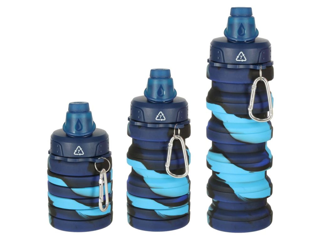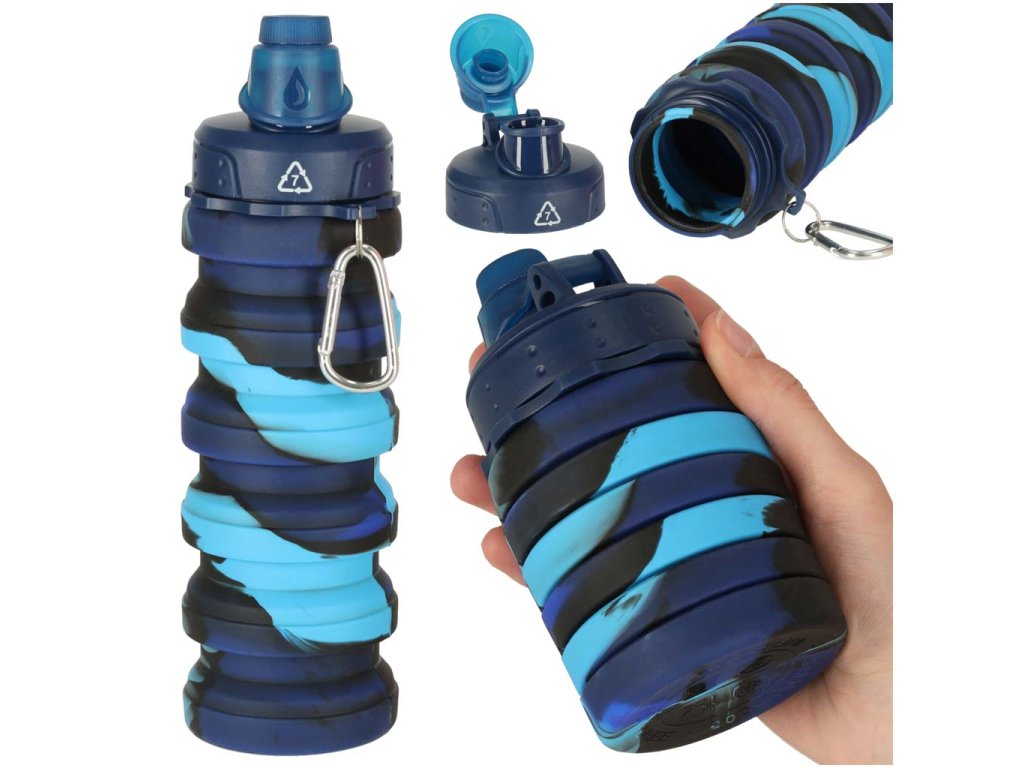 Fľaša na vodu silikónová skladacia fľaša s rukoväťou BEZ BPA 500 ml modrá
