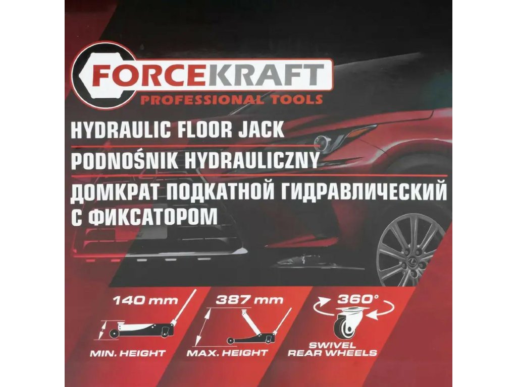 Hydraulický zdvíhač FORCEKRAFT 2,5T s blokádou je ideálnou kombináciou výkonu, bezpečnosti a mobility. Uplatní sa rovnako v profesionálnych dielňach, ako aj v domácich garážach – zaručujúc spoľahlivú činnosť, stabilitu a komfort používania.