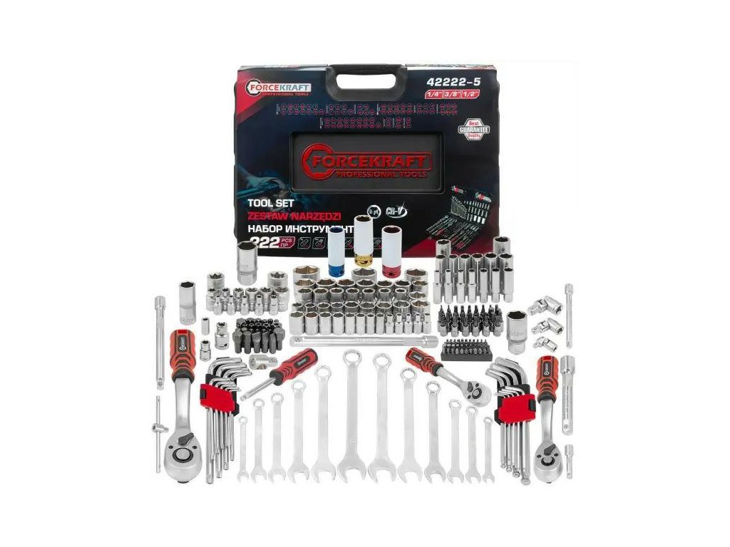 FORCEKRAFT Sada náradia 222 DIELY oceľ CrV VEĽKÁ súprava 1/4" 3/8" 1/2"