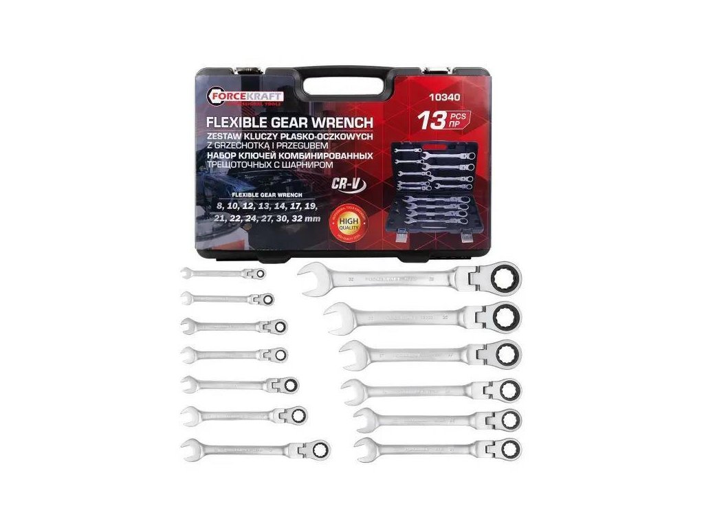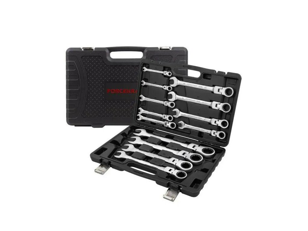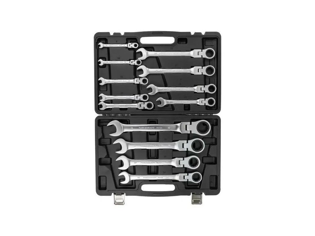 Profesionálna sada očkoplochých kľúčov s dvojitým zameraním a račne Forcekraft je ideálnym riešením pre mechanikov, servisných technikov, a tiež pre náročných domácich majstrov, ktorí kladú dôraz na kvalitu, trvanlivosť a pohodlie pri práci. Vďaka kombinácii račne, pohyblivého kĺbu a precízneho spracovania z chróm-vanádiovej ocele (Cr-V), tento komplet sa osvedčí ako v autoservisoch, tak aj pri bežných opravách či montážnych prácach.