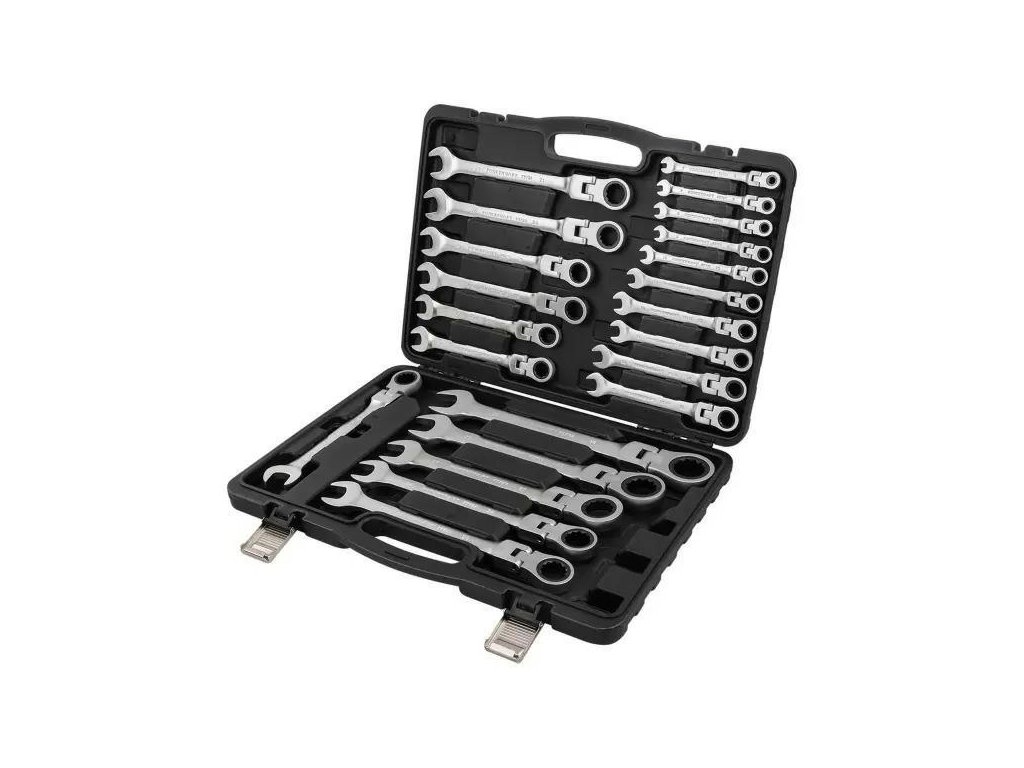 Sada obsahuje až 22 vidlicovo-okruhových kľúčov v rozsahu od 6 do 32 mm, čo umožňuje pohodlné vykonávanie väčšiny mechanických a servisných úkonov – od menších domácich opráv, cez práce pri technických inštaláciách, až po profesionálny automobilový alebo priemyselný servis.