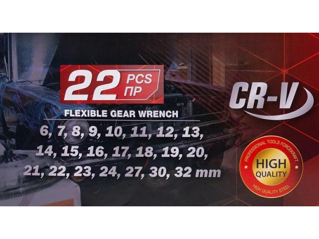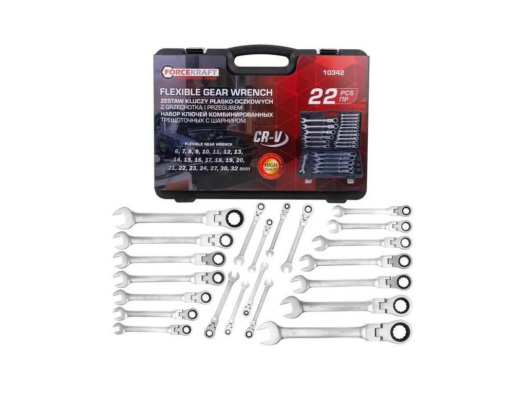 Profesionálna sada vidlicovo-okruhových kľúčov s kĺbom a račňou Forcekraft je ideálnym riešením pre mechanikov, servisných technikov a tiež náročných kutilov, ktorí uprednostňujú kvalitu, trvácnosť a komfort pri práci. Vďaka spojeniu račne, pohyblivého kĺbu a precízneho spracovania z chróm-vanádiovej ocele (Cr-V), tento komplet sa osvedčí tak v automobilových dielňach, ako aj pri bežných opravách či montážnych prácach.