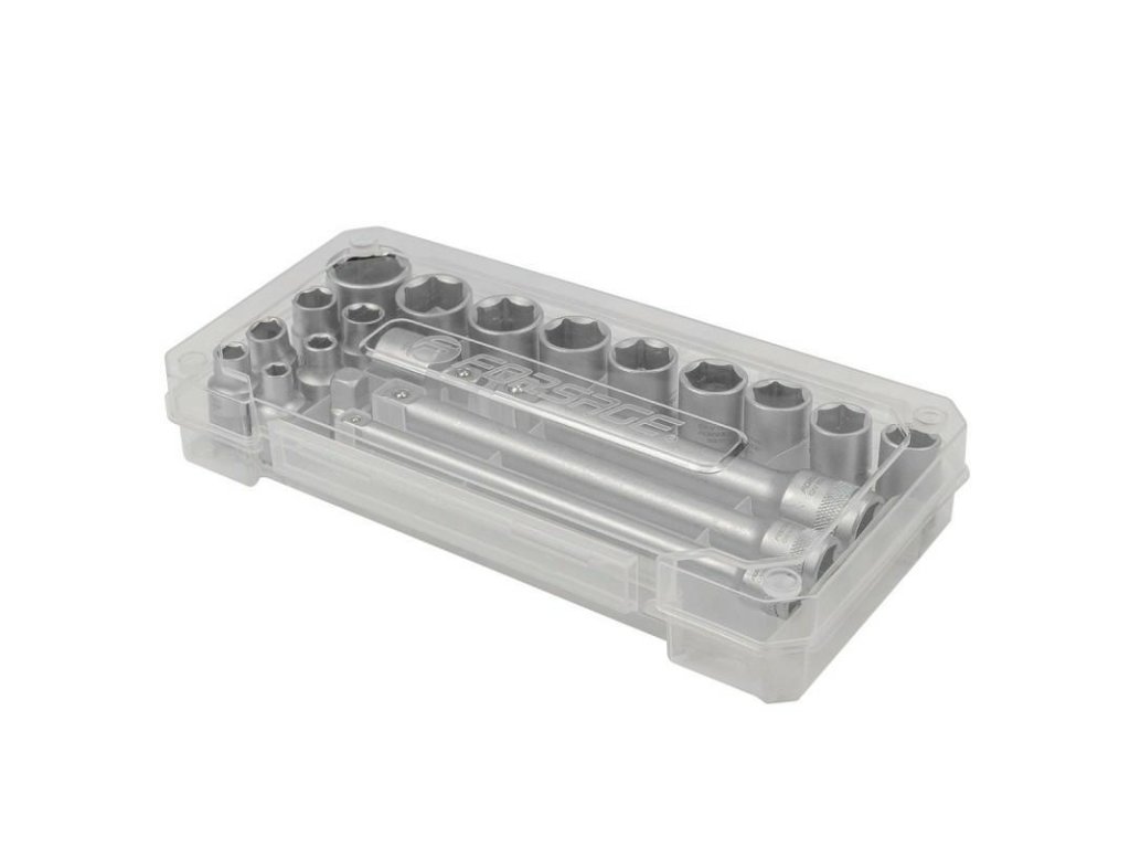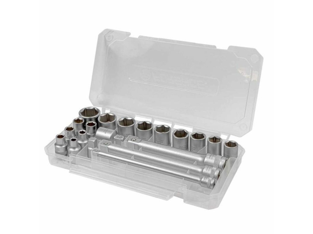 Sada vhodná na prácu s rôznymi pohonmi (1/4”, 3/8”, 1/2”)Kompaktný kufor s priehľadným vekom