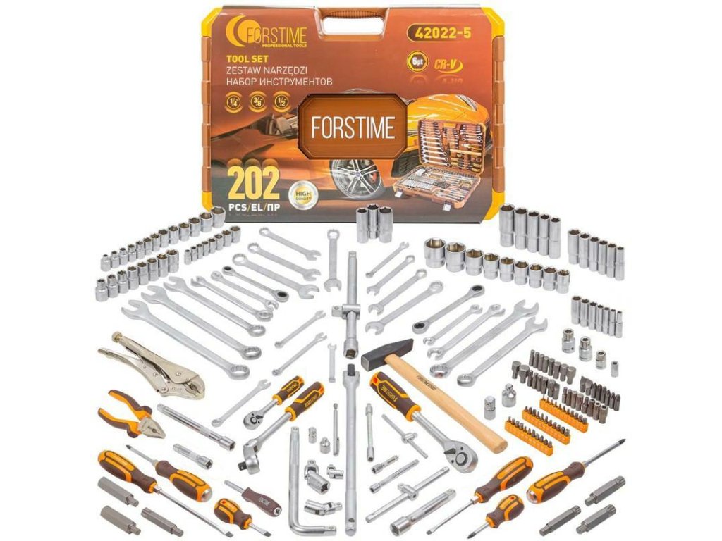 FORSTIME Veľká sada náradia 202 prvkov 1/4" 3/8" 1/2" 6-hranných 6-32mm
