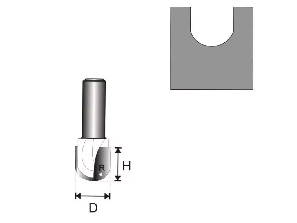 Frézka vidiová do dreva stopka 8mm, D 12,7mm, 19,6mm, R 6,35mm 07F072B