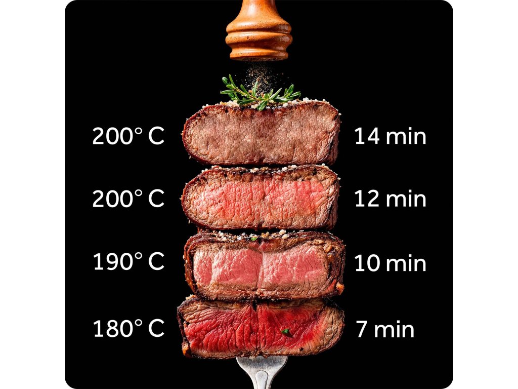 Vďaka pokročilej technológii cirkulácie horúceho vzduchu fritéza dbá na ideálne výsledky smaženia: zlatistá, mierne chrumkavá kôrka na zovňajšku a šťavnatosť vnútri.