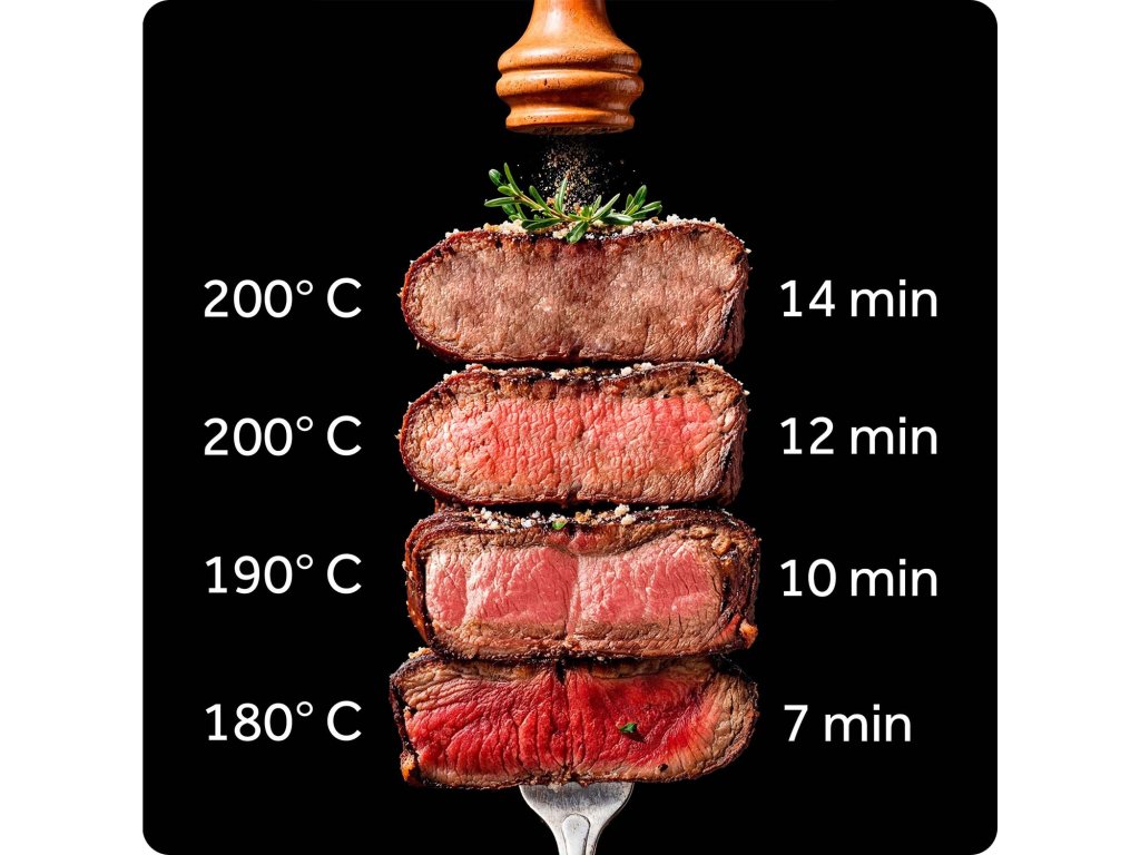 Každý režim automaticky vyberá ideálnu teplotu a čas pečenia.