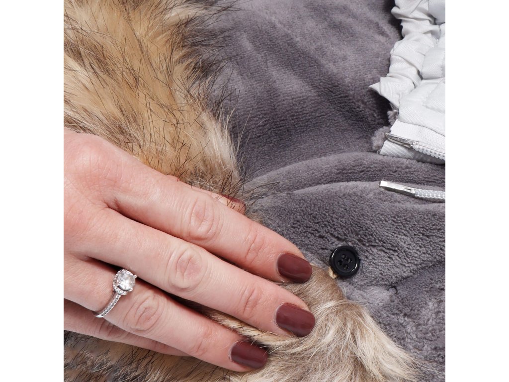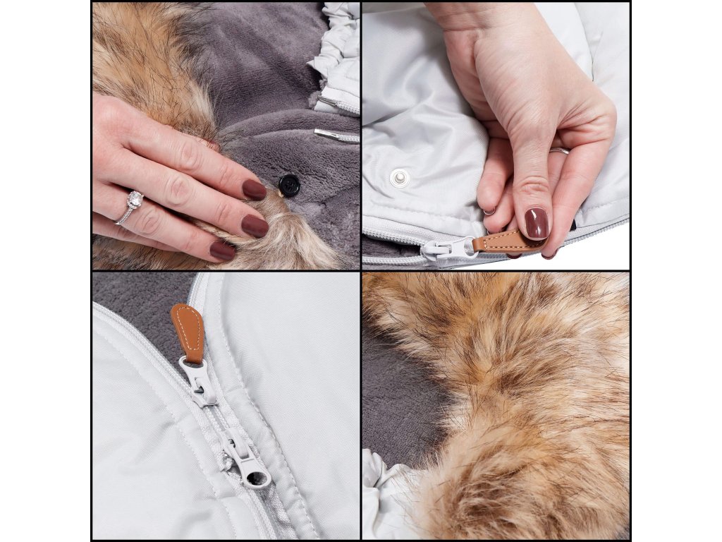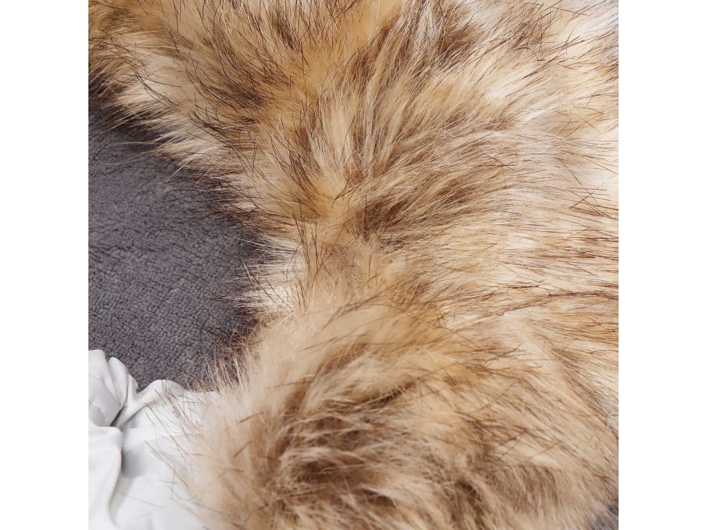 Odnímateľný kožušinový golier - pripevnený k kapucni čiernymi gombíkmi