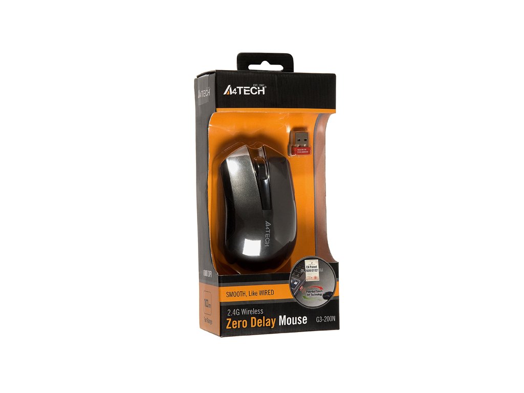Bezdrôtová optická myš G3-200N, ktorá sa vyznačuje inovatívnou technológiou V-Track - vďaka zosilnenému svetelnému lúču prenikajúcemu hlboko do štruktúry povrchu myš pracuje plynule a presne na každom 3D povrchu, ako je páperová prikrývka, sklenený stôl, mramorová podlaha atď. Myš pracuje na inovatívnej, spoločnosťou A4Tech patentovanej synchronizačnej technológii, vďaka ktorej myš pracuje tak plynulo, akoby bola pripojená káblom.