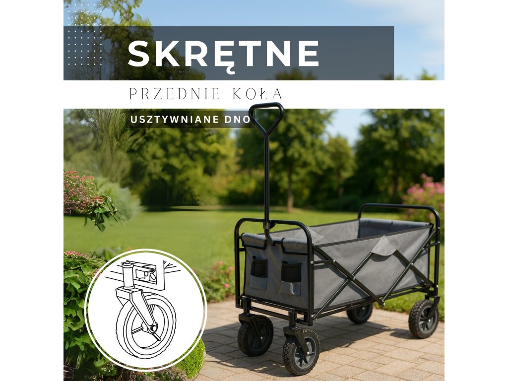 - Vozík má otočné predné kolesá (pomocou rukoväte na ťahanie)