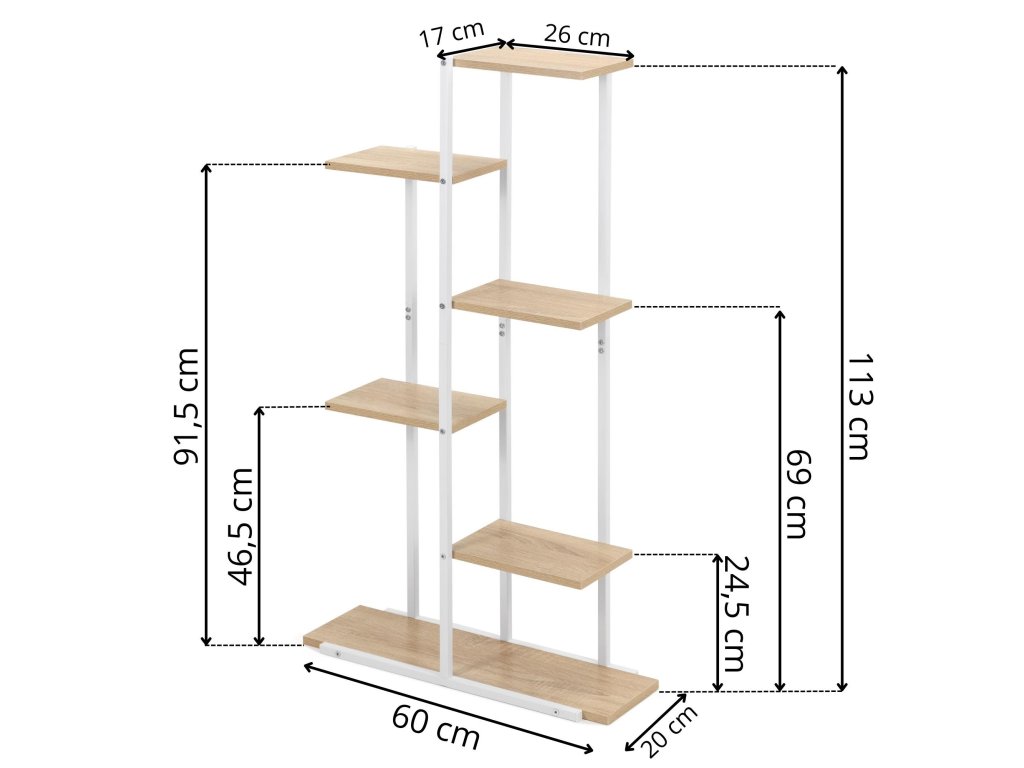 - Výška (od zeme): 1,5 / 24,5 / 46,5 / 69 / 91,5 / 113 cm