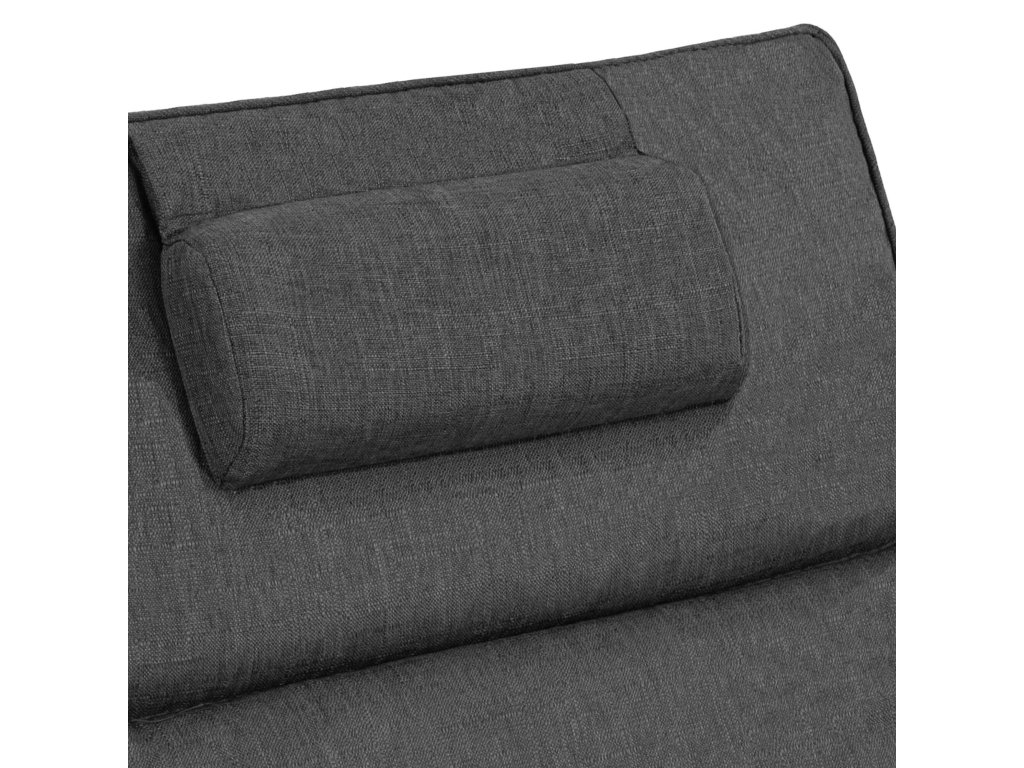 - Rám čiernej farby, látka a vankúš v odtieňoch šedej.