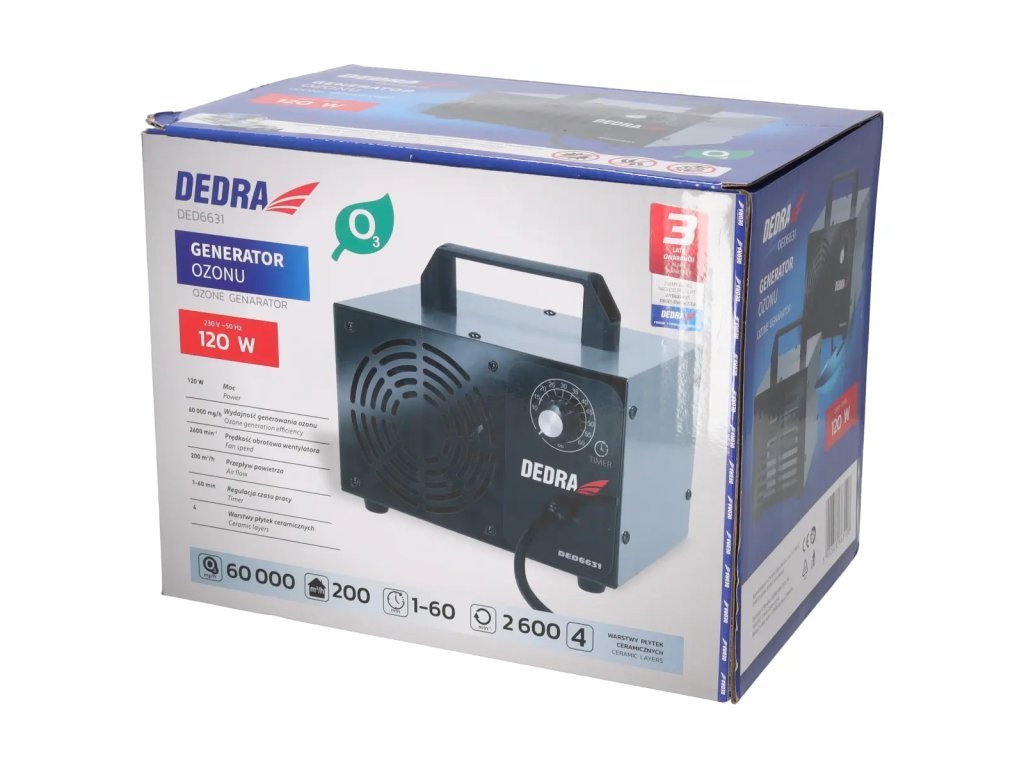 Generátor ozónu DEDRA DED6631 je moderný prístroj navrhnutý s cieľom zabezpečiť čistý a zdravý vzduch v aute, domácnosti alebo iných priestoroch.